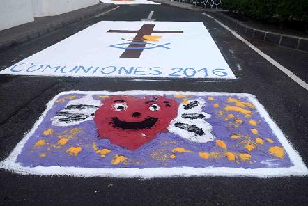 Un total de 10 alfombras llenaron de color las calles aledañas a la iglesia de San Bartolomé, contando con gran participación vecinal en la elaboración de las mismas.