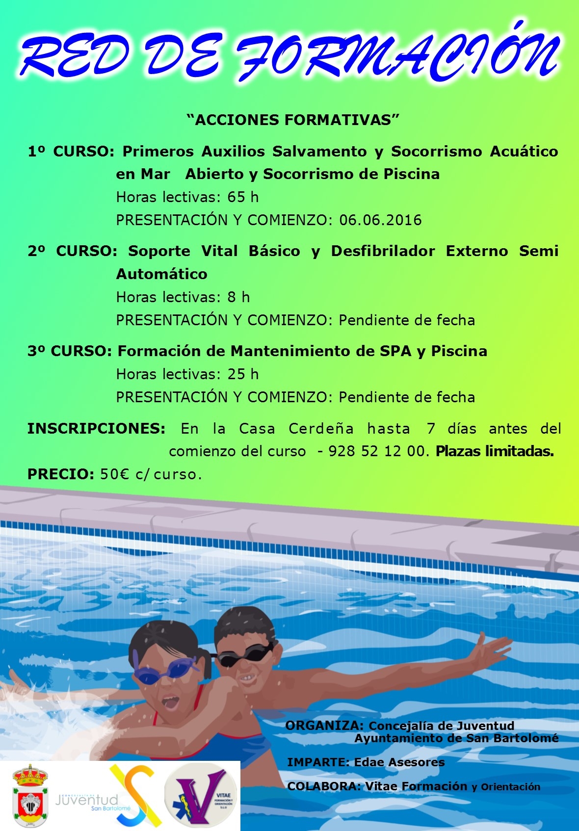 El Ayuntamiento de San Bartolomé informa a toda la ciudadanía que el Curso de Primeros Auxilios y Socorrismo Acuático en Mar Abierto y Piscina que organiza el departamento de Juventud, se ha visto modificado en fechas, siendo su nueva fecha de comienzo el lunes 6 de junio. Los horarios se mantienen tal cuál estaban de 08:30 a 13:30 horas, en el Centro Cívico de Playa Honda.