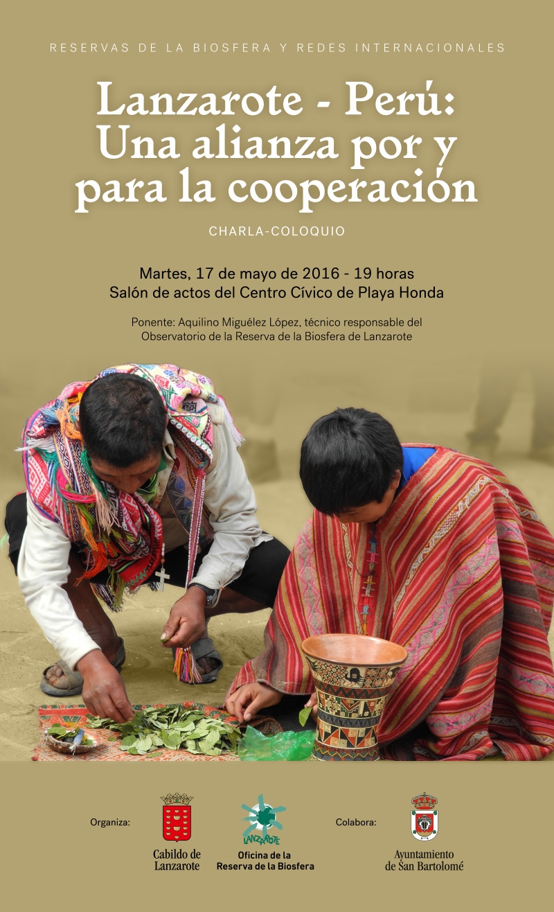 En el marco de las actuaciones llevadas a cabo durante el cuarto Congreso Mundial de las Reservas de la Biosfera que se celebró en el pasado mes de marzo en la ciudad de Lima (Perú), el Cabildo de Lanzarote, a través de la Oficina de la Reserva de la Biosfera, organiza una charla-coloquio abierta a toda la población y colectivos interesados en conocer las alianzas estratégicas establecidas bajo el paraguas de este foro internacional en el que se congregaron más de 1.300 profesionales y representantes de unos 117 países de las 600 Reservas de la Biosfera de todo el planeta, entre las que se encontraba representada la isla canaria de Lanzarote.
