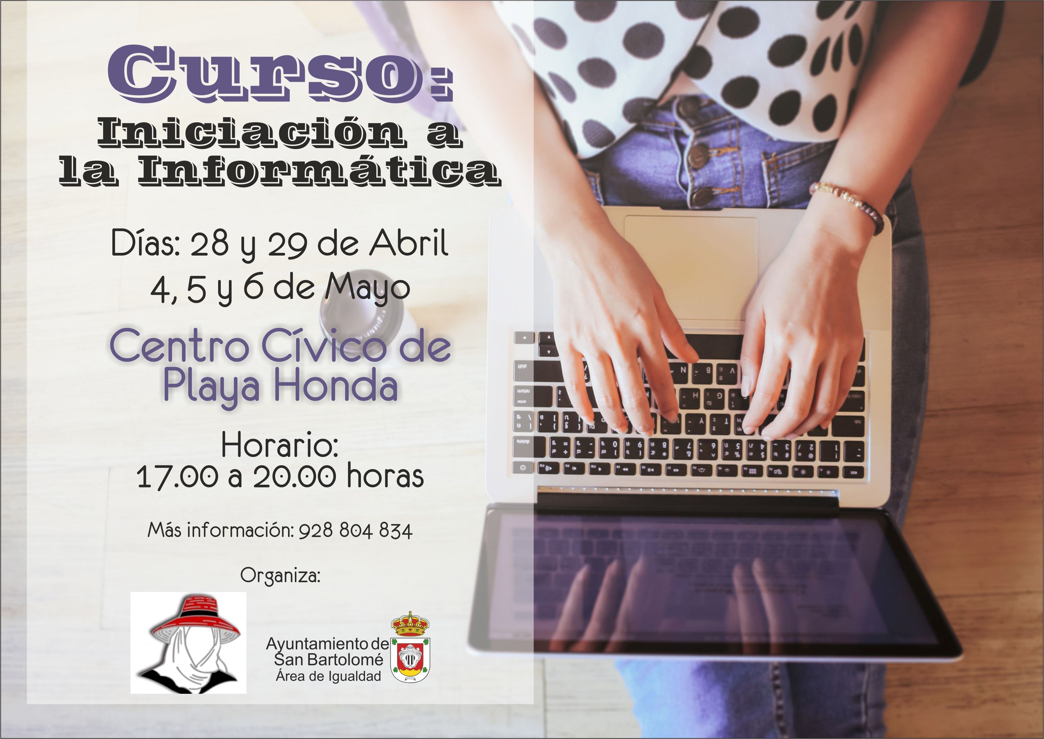 Los días 28 y 29 de Abril y 4,5 y 6 de Mayo tendrá lugar en el centro cívico de Playa Honda un curso de iniciación a la informática y a las redes sociales. En horario de 17.00 h a 20.00 horas. Para mayor información e inscripción contactar al 928804834.
