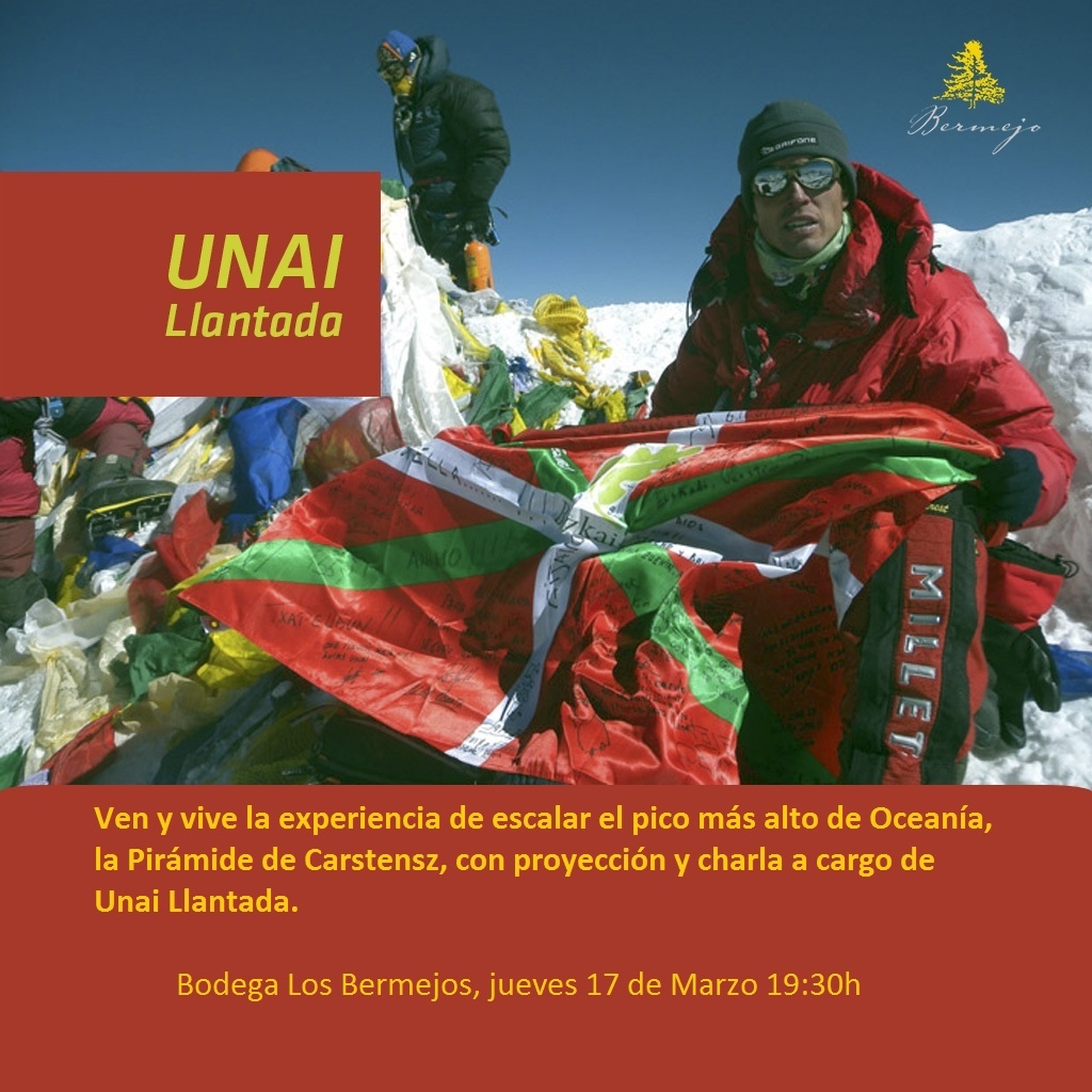 Unai Llantada cuenta su experiencia escalando el pico más alto de Oceanía, la Pirámide de Carstensz, y lo hará en Bodega Los Bermejos el 17 de marzo, a las 19.30 horas, a través de una proyección y charla. Los asistentes al acto podrán realizar preguntas al invitado o resolver las dudas que se les planteen al respecto.