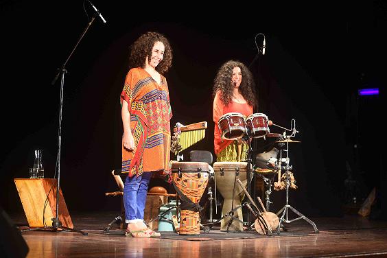 Cristina y Karina acompasaron palabras y percusión creando una sola voz, una narración que llega por igual a adultos, niños o jóvenes.