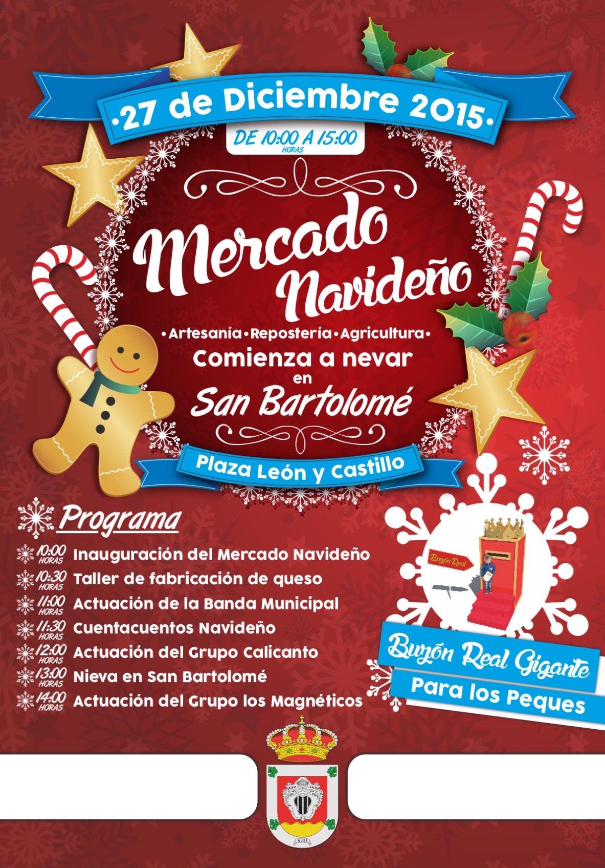 Las concejalías de Cultura, Artesanía y Agricultura del Ayuntamiento de San Bartolomé invitan a vecinos y visitantes a visitar la novena edición del mercado de repostería navideña y panes caseros, licores, quesos artesanales, además de artesanía y alfarería, que tendrá lugar el próximo domingo, 27 de diciembre, de 10.00 a 15.00 horas, en la Plaza León y Castillo de San Bartolomé, en el que un total de 21 puestos ofrecerán a los asistentes sus productos elaborados para estas fechas. 14 de los puestos venderán esmerados trabajos artesanales variados para regalar en estos festejos.
