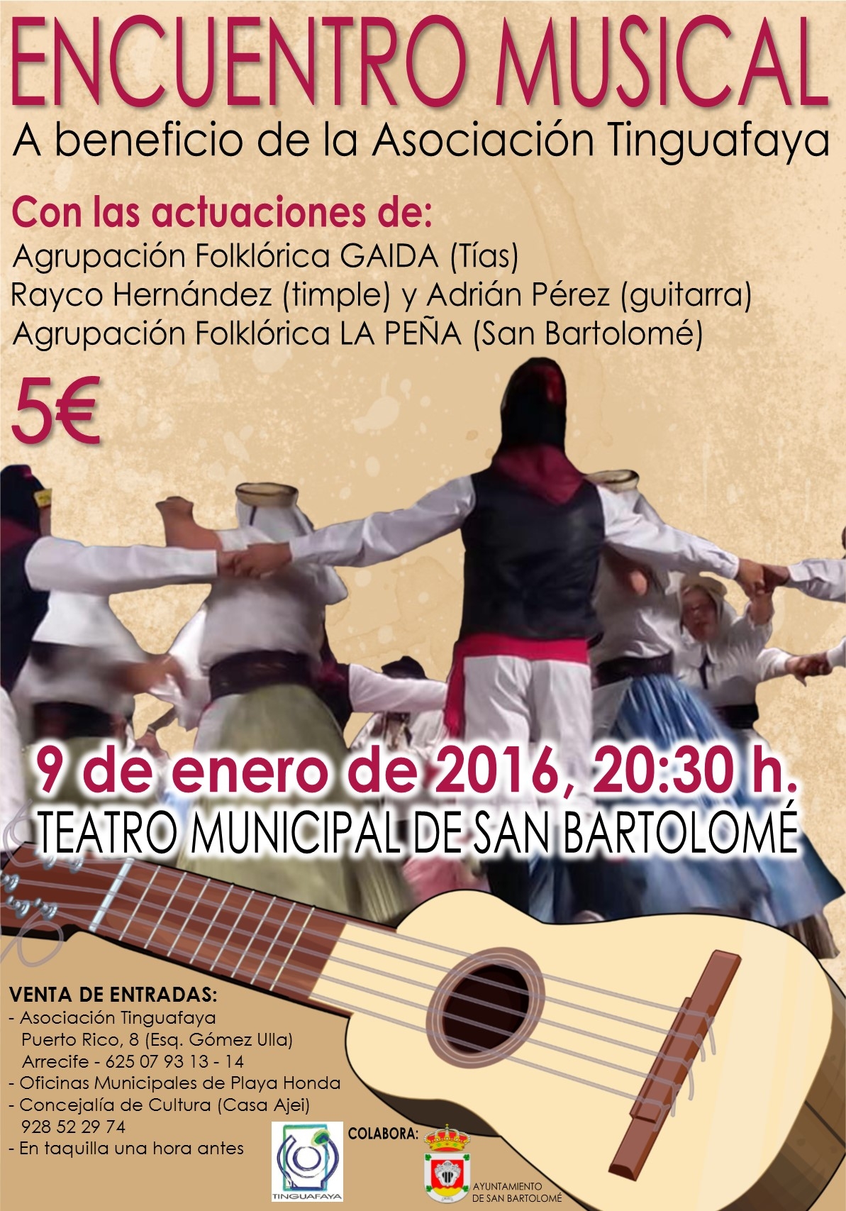Venta de entradas: Asociación Tinguafaya, Oficinas Municipales de Playa Honda, Casa Ajei y en taquilla una hora antes.