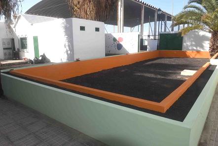 Las obras realizadas han consistido en las mejoras de los accesos a las canchas deportivas, poniendo nueva carpintería en los distintos accesos de las canchas deportivas, la restauración del vallado perimetral de la cancha, el suministro de material deportivo (cuatro porterías), y la realización de nueva jardinera, delimitando una cancha de bolas para los niños. Los trabajos han sido realizados por la empresa adjudicataria Crespo Lanzarote SLU, ascendiendo el importe a 26.872,33€.