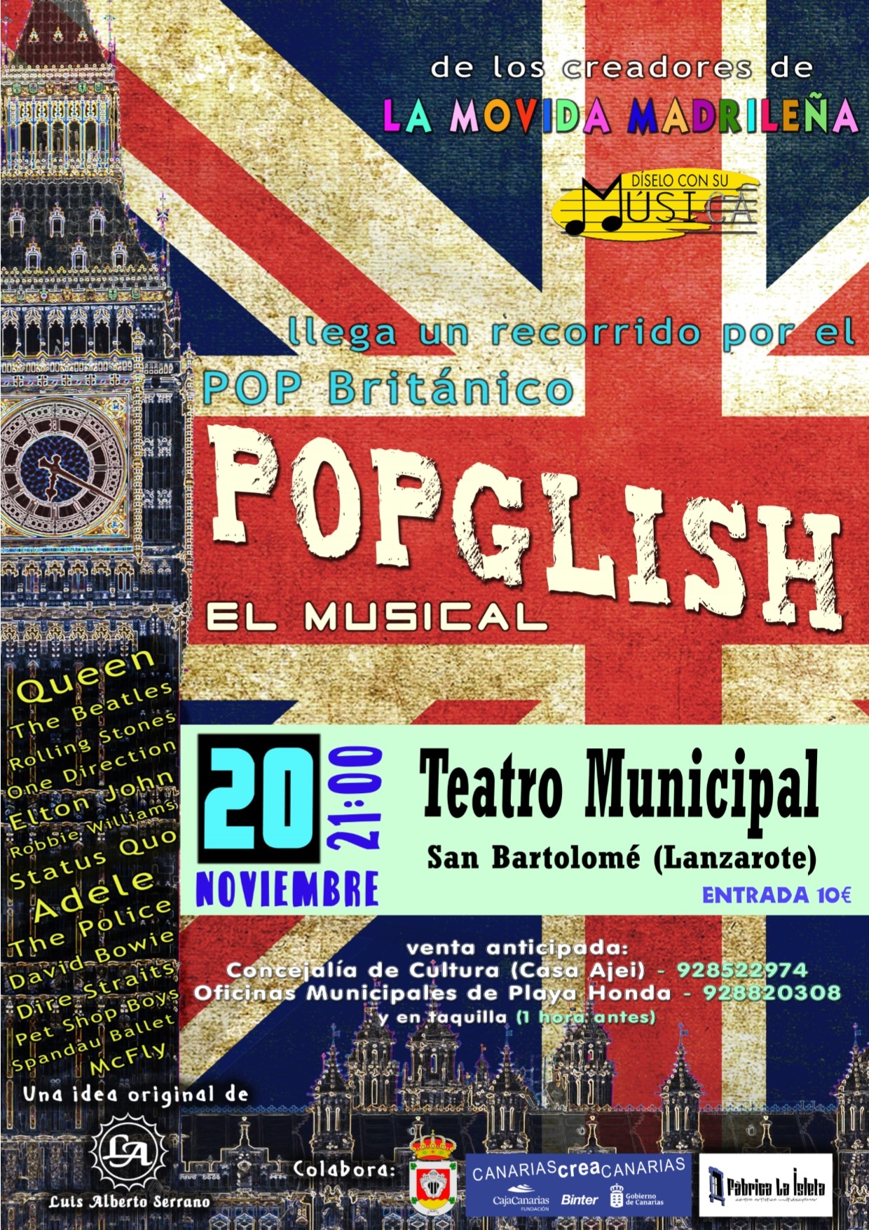 Popglish se presentara el 20 de noviembre a las 21.00 horas en el Teatro de San Bartolomé, en el que se hará un recorrido musical por esos temas que “forman parte de la vida y temas actuales”.