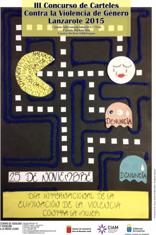 El “III Concurso de Carteles contra la Violencia de Género de Lanzarote”, organizado por el Cabildo de Lanzarote, está entre las actuaciones con motivo del Día Internacional de la Eliminación de la Violencia contra la Mujer que se celebra el 25 de noviembre. El concurso va dirigido a estudiantes de 3º y 4º de la ESO y 1º de Bachillerato de los institutos de la Isla.