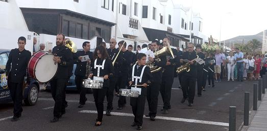 A continuación tuvo lugar la procesión por las calles centrales de la localidad (San Borondón, Fragata, Avenida de las playas, Cordel, San Borondón y Mayor) acompañada por la Banda de San Bartolomé en la que vecinos/as acompañaron a Santa Elena en su recorrido, contando con la presencia de numerosos ediles municipales.