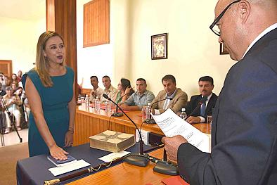 En la mañana de hoy tomó posesión la Alcaldesa de San Bartolomé, tras prometer su cargo, recibiendo el bastón de mando, símbolo del cargo, que la proclamada la primera edil municipal, con mayoría absoluta.