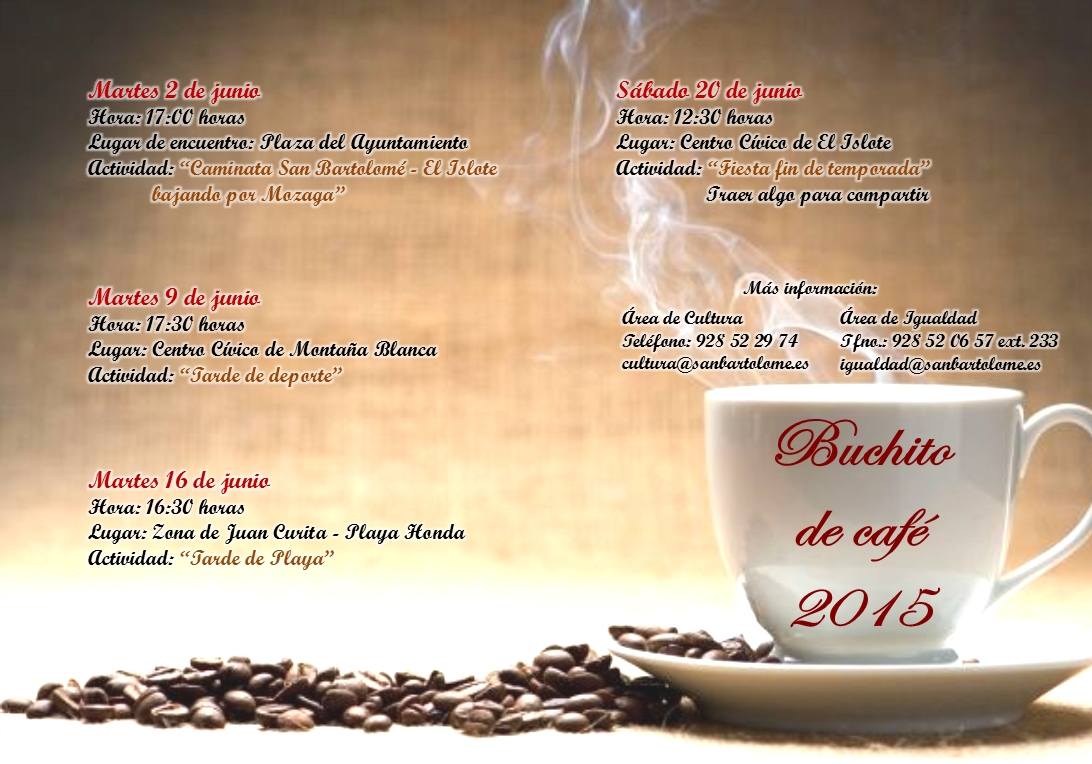 El mes de junio el “Servicio Municipal Buchito de Café” ha contado con una variada programación que incluyó actividades como senderismo, deporte, tarde de playa y el acto celebrado este fin de semana de clausura hasta que se reanude nuevamente la actividad en el mes de octubre. El acto celebrado en el Centro Cívico del Islote, contó con música y las usuarias del servicio degustaron productos gastronómicos elaborados por ellas mismas para la ocasión, compartiendo así la jornada, que momentáneamente despide la actividad.