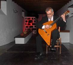 El músico Domingo Corujo, a través de su inseparable guitarra de cola, de la que es inventor, mostró su maestría dando ese punto artístico con los arreglos realizados a las distintas piezas interpretadas, y explicaciones pormenorizadas a cada uno de los temas tocados en el transcurso de la velada.