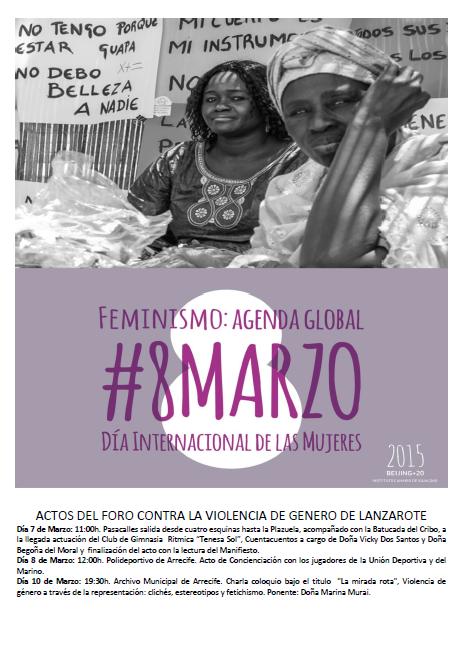 El Ayuntamiento es copartícipe de los actos que se organizan desde el FORO CONTRA LA VIOLENCIA DE GÉNERO DE LANZAROTE, e invita a toda la población a participar en los mismos, que se desarrollarán los días, 7,8 y 10 de marzo respectivamente.