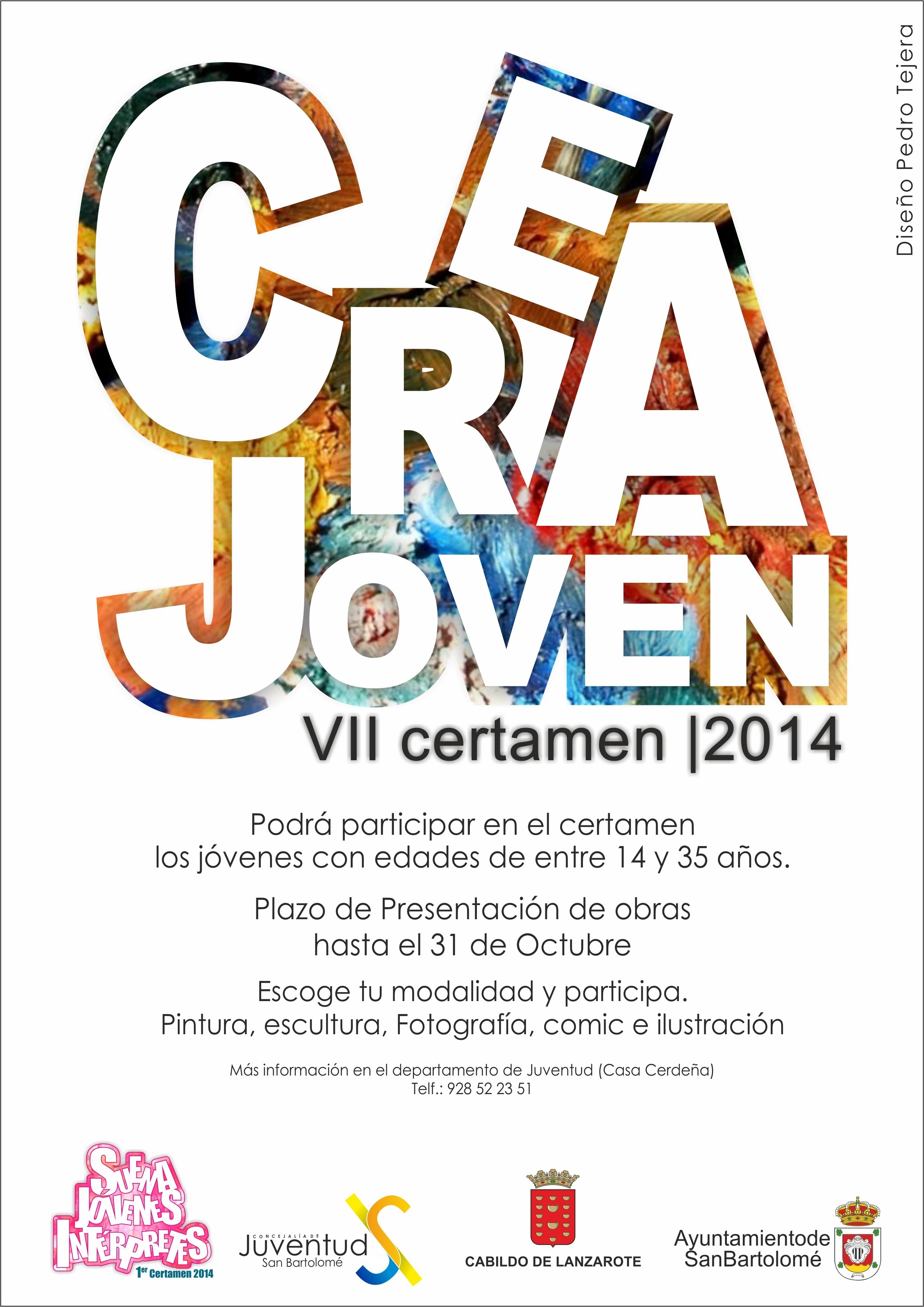 David Rocío, Concejal de Juventud, “anima a conocer las obras expuestas y comenta que el Certamen estaba abierto a la participación de jóvenes entre 14 y 35 años, en distintas modalidades artísticas, pudiendo los participantes presentar un máximo de dos obras originales e inéditas que no hayan sido premiadas en anteriores ediciones. Mañana se conocerá la enorme calidad de los trabajos realizados por los jóvenes”.