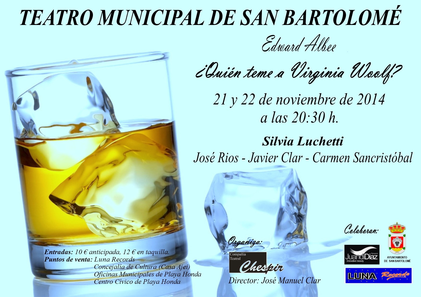 La Compañía Teatral Chespir pondrá en escena la obra teatral "¿Quién teme a Virginia Woolf?" los días 21 y 22 de noviembre a las 20,30 horas en el Teatro Municipal de San Bartolomé.