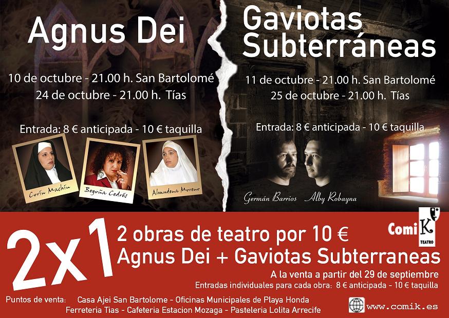 Comi-K Teatro, presentó acompañados por el concejal de cultura, Eduardo Perera, el estreno de las obras Agnus Dei y Gaviotas Subterráneas, que se representará los días 10 y 11 de octubre respectivamente a las 21:00 horas en el Teatro Municipal de San Bartolomé.