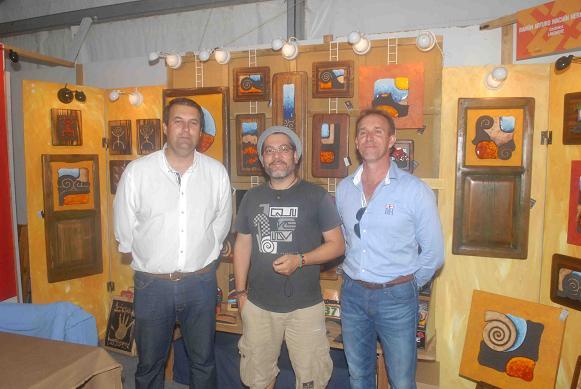 La muestra y venta de los trabajos artesanales, principal objetivo de la Feria de Artesanía de Mancha Blanca, contó con la presencia de artesanos del municipio de San Bartolomé, dos excepcionales ceramistas, Fefo García y Ramón Machín y Lorenzo Morín, que con sus manos labra el cuero.