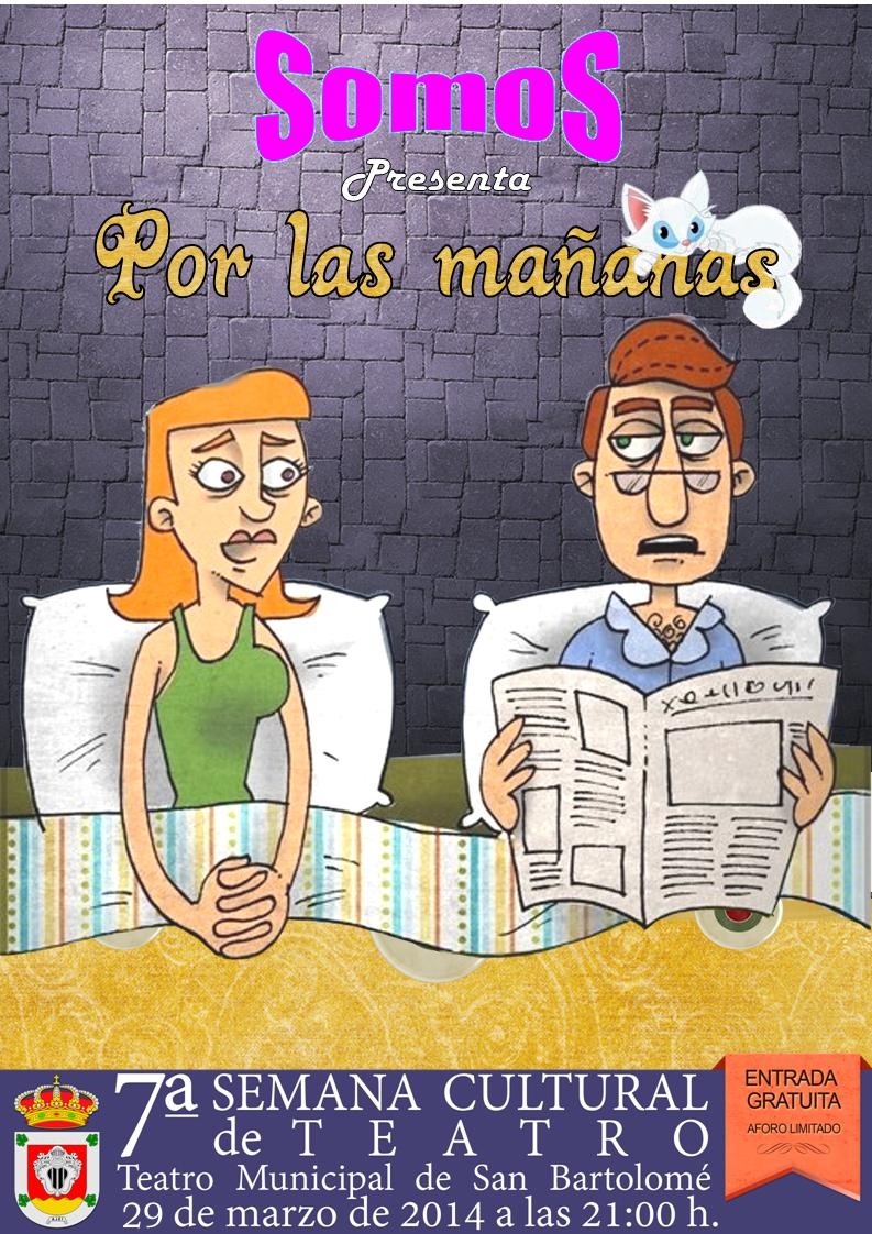 El sábado, 29 de marzo, a las 21:00 horas, el grupo de teatro SomoS, pone en escena POR LAS MAÑANAS, dirigida por Esther Vazquez, en el Teatro Municipal.