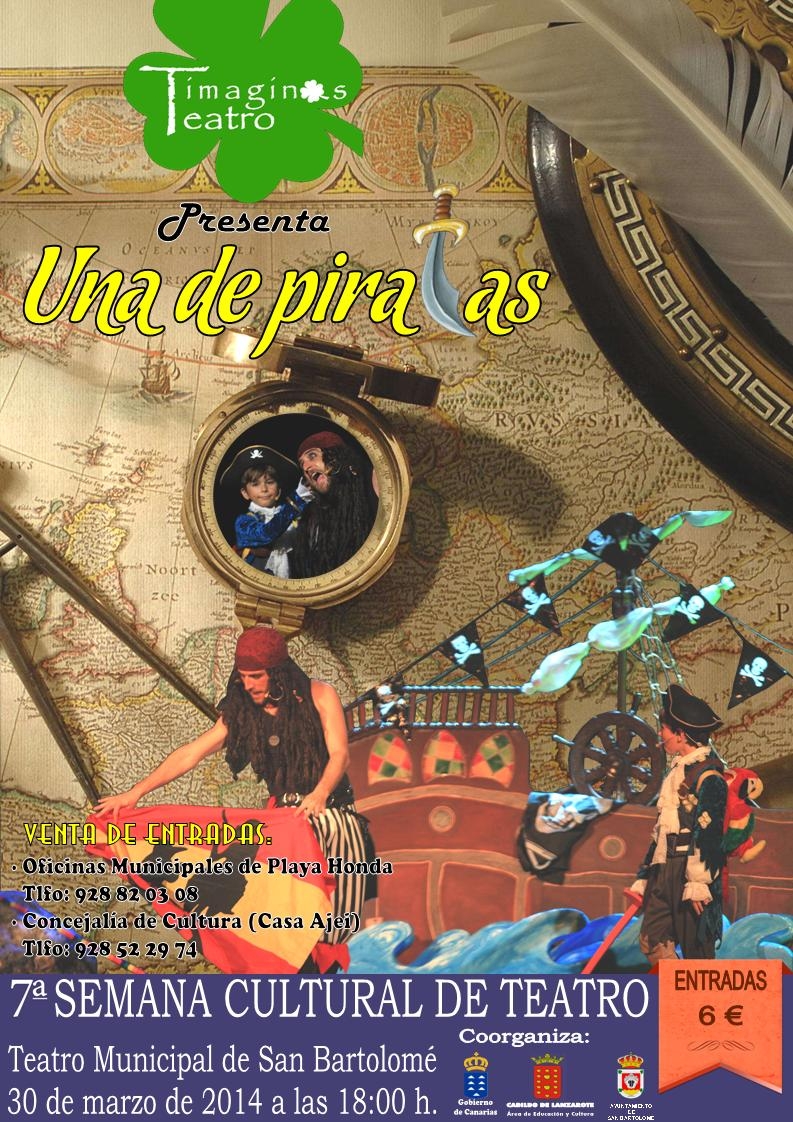 TIMAGINAS TEATRO, deleitará a todos los asistentes, con UNA DE PIRATAS dentro de la VII Semana Cultural de Teatro de San Bartolomé, desembarcando en el Teatro Municipal el domingo 30 de marzo a las 18.00 horas.