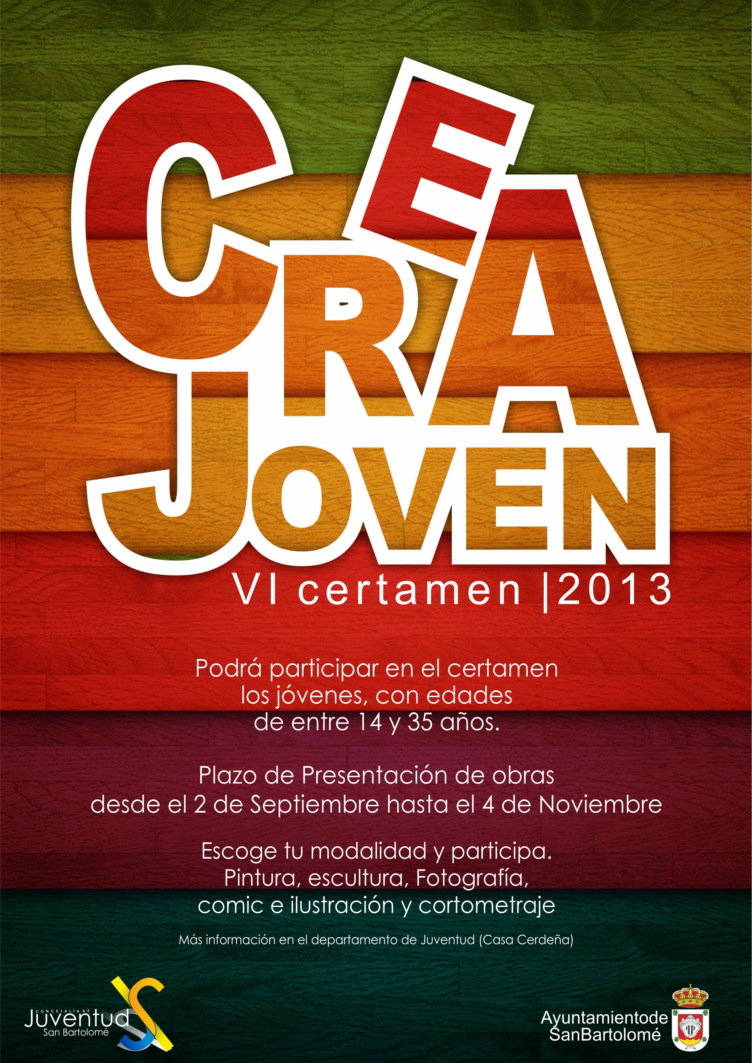 La Concejalía de Juventud del Ayuntamiento de San Bartolomé que dirige David Rocío, volverá a organizar este año, por sexta edición, el Certamen Crea Joven que contará con las modalidades artísticas de escultura, fotografía, pintura, cortometraje y cómic e ilustraciones, que estarán premiadas con mil euros para la obra ganadora y quinientos euros para el segundo clasificado.