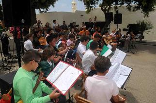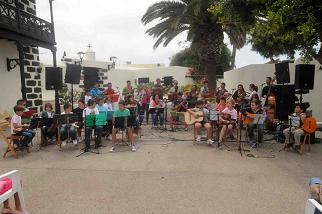 El patio de la Casa Ajei, acogió el pasado domingo, 16 de junio, un nuevo  concierto de la Escuela de Folclore Municipal,   en el que niños y mayores exhibieron los acordes y habilidades musicales que han ido adquiriendo durante el curso 2012/13, de la mano de su  director,  Leo García Corujo.