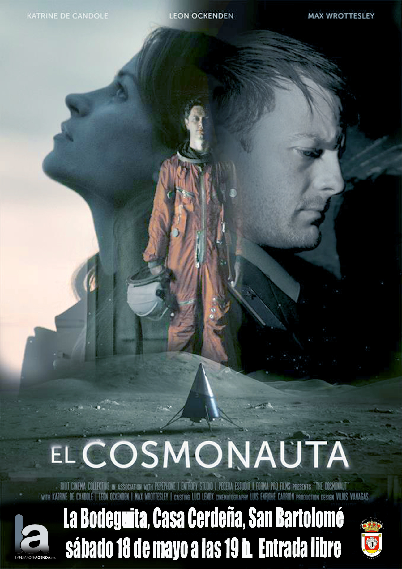 El Ayuntamiento de San Bartolomé, invita a toda la ciudadanía de Lanzarote, el próximo sábado, día 18 de mayo, la productora, “Riot Cinema Collective” presentará gratis para todo el mundo y de manera simultánea, el largometraje libre "EL COSMONAUTA". Los tres jóvenes directores productores son Nicolás Alcalá, director, guionista, Carola Rodríguez, productora ejecutiva y Bruno Teixidor, director de la segunda unidad y productor ejecutivo. La presentación en la isla, se hará el sábado, 18 de mayo, a las 19:00 horas en la Bodeguita de la Casa Cerdeña, con entrada libre.