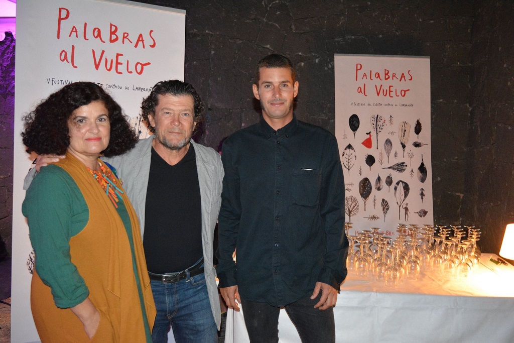 Hoy, todas las miradas se dirigen al centro de la sala, ocupado por un pequeño escenario de madera rotulado con el nombre del festival que acoge Lanzarote Art Center: Palabras al Vuelo. Sobre las sillas: una flor blanca con la que los recién llegados juguetean, o prenden en el pelo, o en el ojal de la chaqueta.