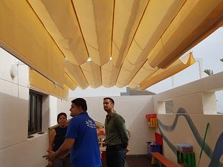 San Bartolomé mantiene su firme compromiso con los centros docentes del municipio: La unitaria de Montaña Blanca, cuenta desde esta semana con nueva zona de sombra, tras la instalación de toldos en el patio del centro, mejorando así la instalación, que es de reciente construcción.