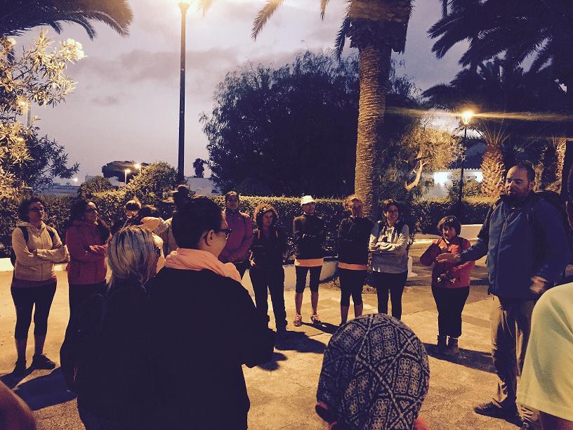A medida que se avanzaba, el paisaje se lleno de paredones en el horizonte nocturno, luego peña Aguda y Morro Francisco para observar desde lo alto iluminado Playa Honda y el Aeropuerto. Luego se descendió por un terreno de jable suelto entrando en Playa Honda, donde se compartió un rato de buena música y enyesque canario.