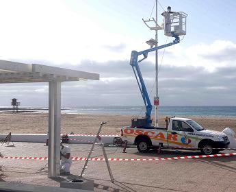 San Bartolomé comienza el repintado del mobiliario urbano de la Avenida de Playa Honda