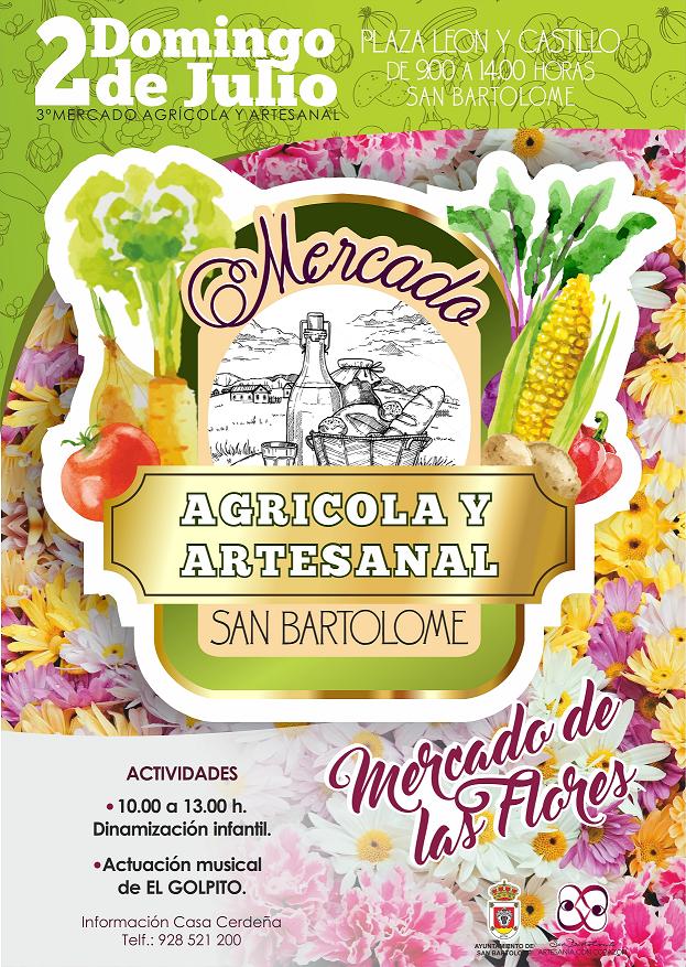3º Mercado Agrícola y Artesanal de San Bartolomé (Plaza León y Castillo de 9.00 a 14.00 horas) el domingo 2 de julio.