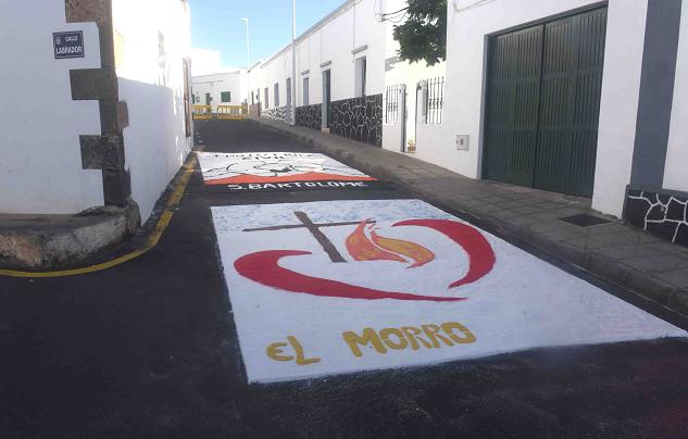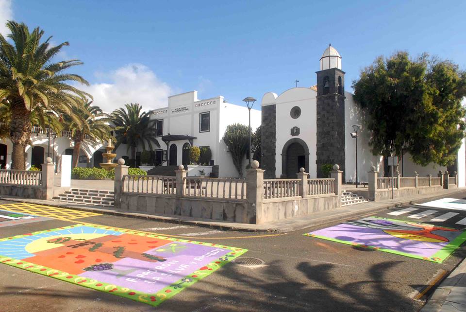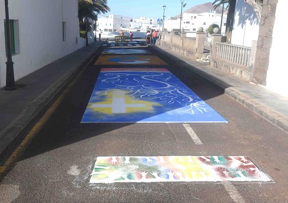 Un total de 14 alfombras fueron las que se realizaron entre colectivos como: Murga infantil Los Guacimetitos, Asociación de Vecinos Nuevo Futuro, Comité Local del PSOE, dos grupos de Catequesis de la parroquia de San Bartolomé, la Asociación de Voluntarios de la Protección Civil de San Bartolomé, Comité Local de CC, la Coral Municipal, Asociación Cultural Amibaila, la Escuela Municipal de Folclore, AMPA Diamar, Asociación de Vecinos de El Islote “El Parral” y dos alfombras de Vecinos del Morro.