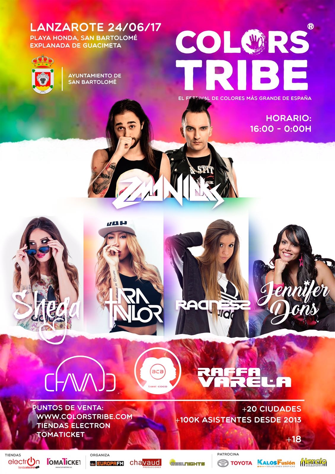 ColorsTribe, evento producido por Real Nights y organizado con la colaboración en Lanzarote de Chavaud Producciones, propone una jornada repleta de música electrónica y diversión. Tras su inauguración en 2013, el festival ColorsTribe ha sumado la participación de más de 150.000 personas a lo largo de toda la geografía española. Marco Rother, director de Real Nights, resalta que “la primera edición de ColorsTribe en Lanzarote fue todo un éxito y para esta segunda queremos batir un nuevo récord ofreciendo una experiencia de disfrute, música y colorido a la que se suma la creación de alrededor de 200 puestos de trabajo directos e indirectos”.