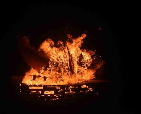 La quema de la Guachinanga se llevó a cabo tras las actuaciones, al anochecer, acompañada por fuegos artificiales, dando paso a disfrutar de un baile de máscaras a ritmo de Los Conejeros que se prolongó hasta las 23:00 horas.