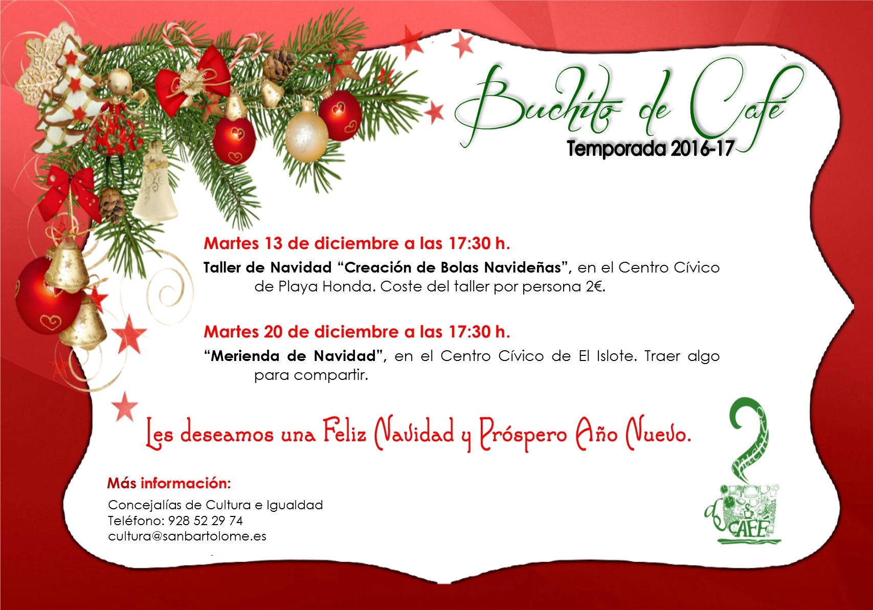 El Ayuntamiento de San Bartolomé a través de las concejalías de cultura e igualdad, organiza varias actividades dentro del Servicio Municipal Buchito de café para el mes de diciembre.