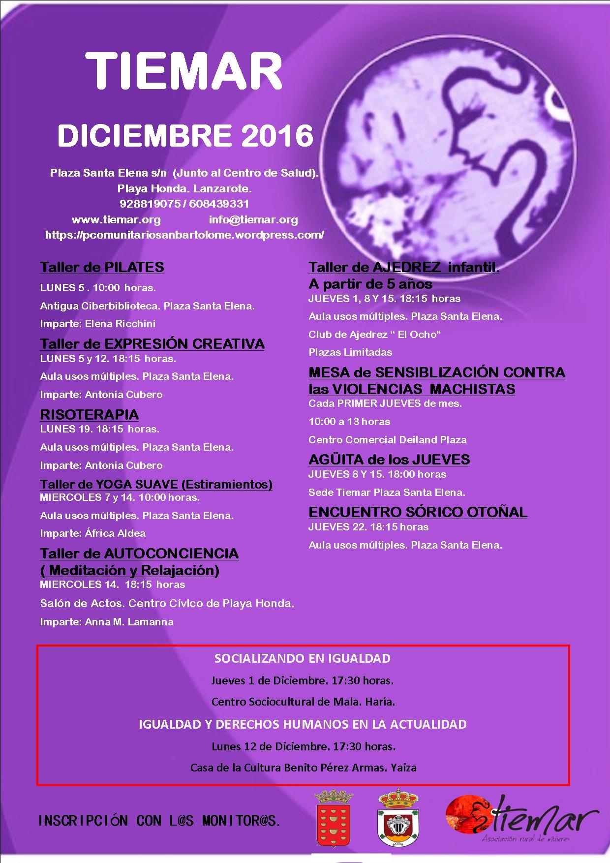 La Asociación Tiemar informa a toda la ciudadanía que cuenta con una amplia agenda de actos para el mes de diciembre, invitando a las personas interesadas a participar en las mismas.
