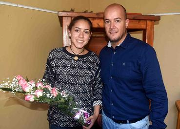 El concejal de deportes del Ayuntamiento de San Bartolomé, Raúl de León, recibió en la mañana de ayer a Sara Díaz, que participará formando parte de la Selección Española en el Europeo Sub-23 de Petanca, que se disputará este fin de semana en la ciudad de Santander, deseándole suerte en esta competición e intercambiando expectativas e inquietudes con la deportista.