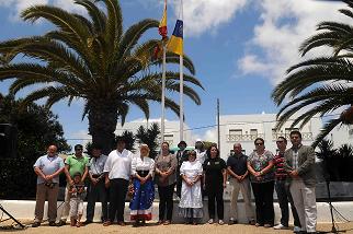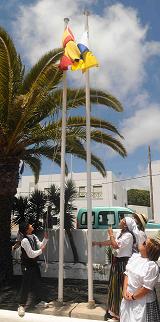 Una vez finalizó la lucha, se realizó el izado oficial de la Bandera Canaria, con la presencia de numerosas autoridades, sonando de fondo el arrorró, himno de Canarias, al que acudió la Corporación Municipal encabezada por la Alcaldesa, María Dolores Corujo Berriel. El izado lo realizaron dos niños ataviados para la ocasión.