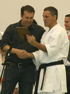 El Club de Kárate Ajei agradeció la participación del Concejal Antonio Rocío Romero, concejal de deportes, que asistió al evento e hizo entrega de una placa en nombre de la Corporación Municipal, a Leandro García, por su trabajo y logros en el mundo deportivo durante todos estos años en el municipio de San Bartolomé. Los alumnos del C.D. Kárate Ajei, también se sumaron, haciendo entrega de una placa, como agradecimiento a Leandro García, por el esfuerzo y entrega que ha venido realizando durante todos estos años con ellos en el Club.