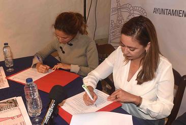 La alcaldesa de San Bartolomé, María Dolores Corujo Berriel formalizó en la mañana de hoy un convenio de colaboración, rubricado también por Blanca Fajardo López, Presidenta de la Demarcación de Lanzarote del Colegio Oficial Interinsular de Arquitectos de Canarias (COIAC), para la organización y ejecución del concurso público para el Parque Urbano de Playa Honda.
